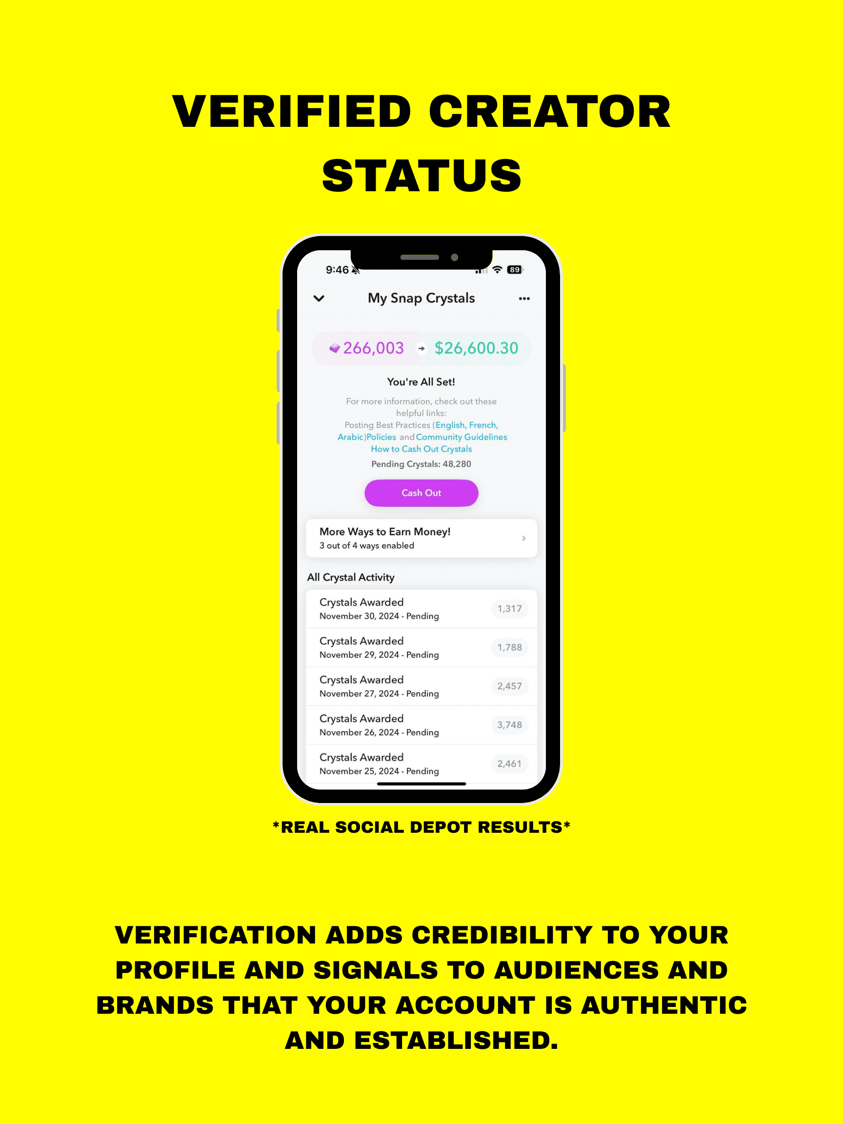Once verified, creators can unlock multiple revenue streams on Snapchat. With strong audience growth and the right monetization strategy, creators can earn through platform payouts, brand collaborations, and recurring promotional campaigns. Many creators see a 4.6x growth in creator revenue!